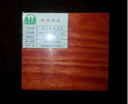 | 桂林輝煌木業(yè)有限公司是主營生產(chǎn)銷售建筑模板,建筑木方,木托盤,木包裝箱,木卡板,杉木拼板的專業(yè)廠家,主要產(chǎn)品有:1220*2440mm、1250*2500mm、1830*915mm,厚度:11mm、12mm、13mm、14mm、15mm、16mm、18mm 的清水模板。產(chǎn)品嚴(yán)格按照行業(yè)標(biāo)準(zhǔn)生產(chǎn)(GB/18580-2006),并且我公司生產(chǎn)的“輝煌” 建筑模板已通過ISO9001-2000 國際質(zhì)量管理體系認(rèn)證,其性能在國內(nèi)同類產(chǎn)品中處于領(lǐng)先水平, 我公司建筑模板全部采用 三胺膠 厚面皮 全整芯高層專用 反復(fù)使用10—12次,采用優(yōu)良松木,桉木,楊料,依據(jù)科學(xué)原理,經(jīng)過先進(jìn)的生產(chǎn)工藝流程加工而成。具有質(zhì)量可靠、抗拉力強(qiáng)、耐水性好、平整光滑等特點 |