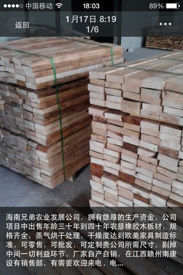 海南兄弟農(nóng)業(yè)發(fā)展有限公司,在當?shù)亻L期持有農(nóng)墾局的橡膠木指標,樹齡有30-40年,是海南橡膠木中的極品,本公司生產(chǎn)的橡膠木板全部經(jīng)過真空防蟲防腐、蒸汽烘干處理,各項要求均達到歐美家具制造的標準,材質(zhì)硬、無礦物線、色差少、無邊皮、無蘭斑,F(xiàn)已大批量生產(chǎn)各種規(guī)格的橡膠木板材,歡迎各家具等企業(yè)或經(jīng)銷商來電來人洽談。 |